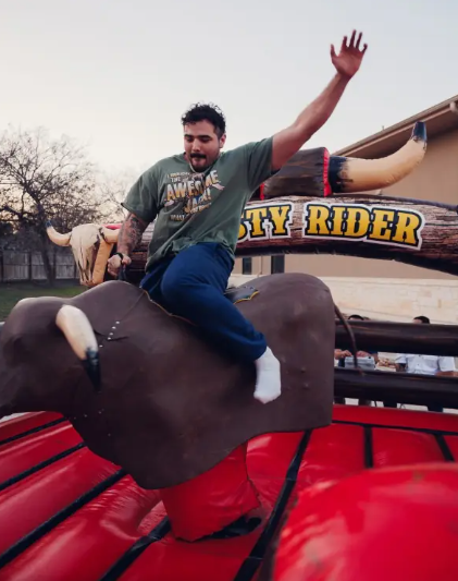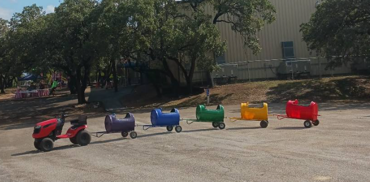 Mardi Gras Seguin 2026 will have two large activity areas for the kids and adults in the parking lot. One having an obstacle course, barrel train, and mechanical bull and the other having four carnival rides!