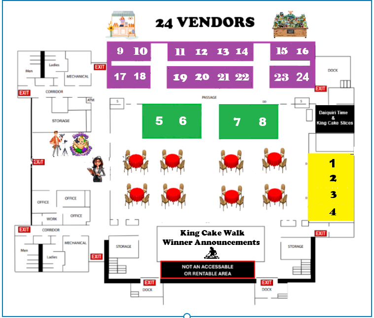 We have Vendor spaces available inside of the Coliseum, giving vendors an opportunity to sell food and other merchandise. Throughout the entire day, all visitors will be attending events and entering contests inside of the Coliseum, so the traffic will be there! After both parades, the party continues with our Mardi Gras Ball, so inside vendors could make great money!
